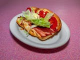 Served with pepperoni, italian sausage, ham, bacon, turkey, pizza sauce and mozzarella cheese.